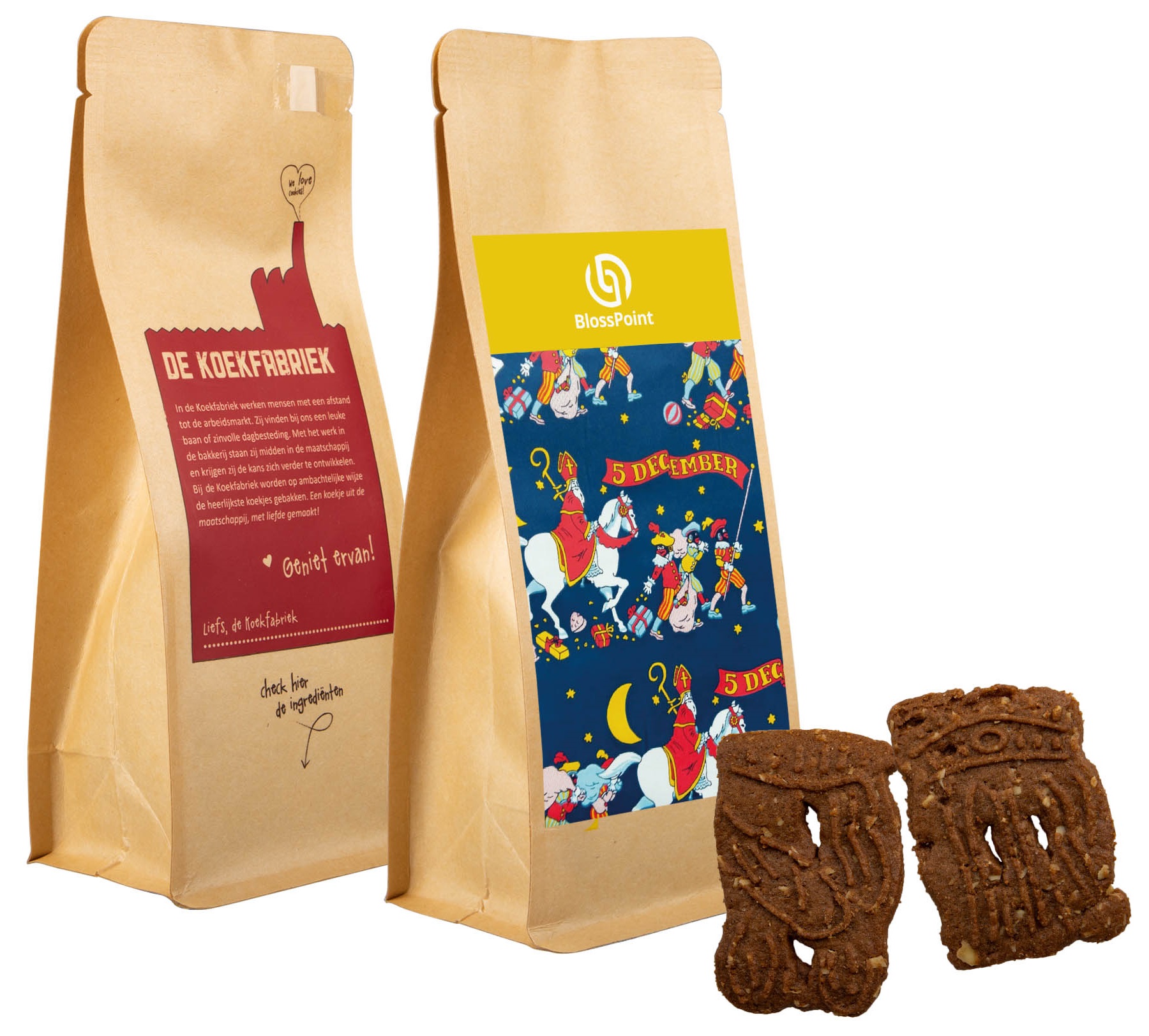 Onze koekjes zijn verkrijgbaar in verschillende varianten en kunnen op diverse manieren gepersonaliseerd worden: sommige kunnen rechtstreeks op het koekje bedrukt worden, bij andere kan het zakje of de verpakking worden voorzien van uw logo, en bij blikjes kan een wikkel of etiket worden toegevoegd. Ook in bulk leverbaar, ideaal voor horeca, kantoren en andere zakelijke omgevingen.