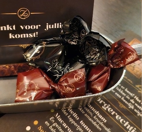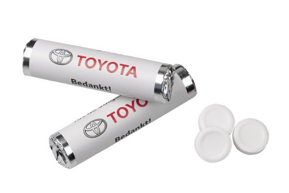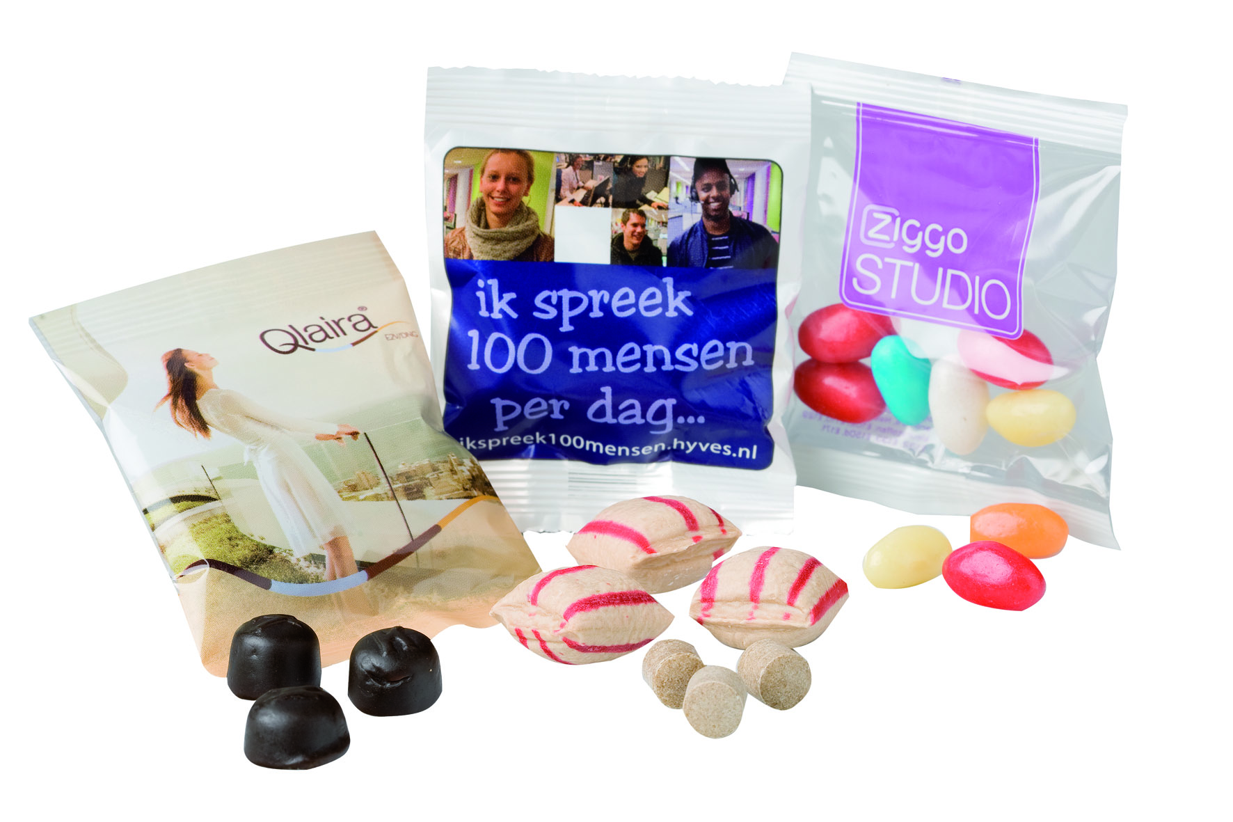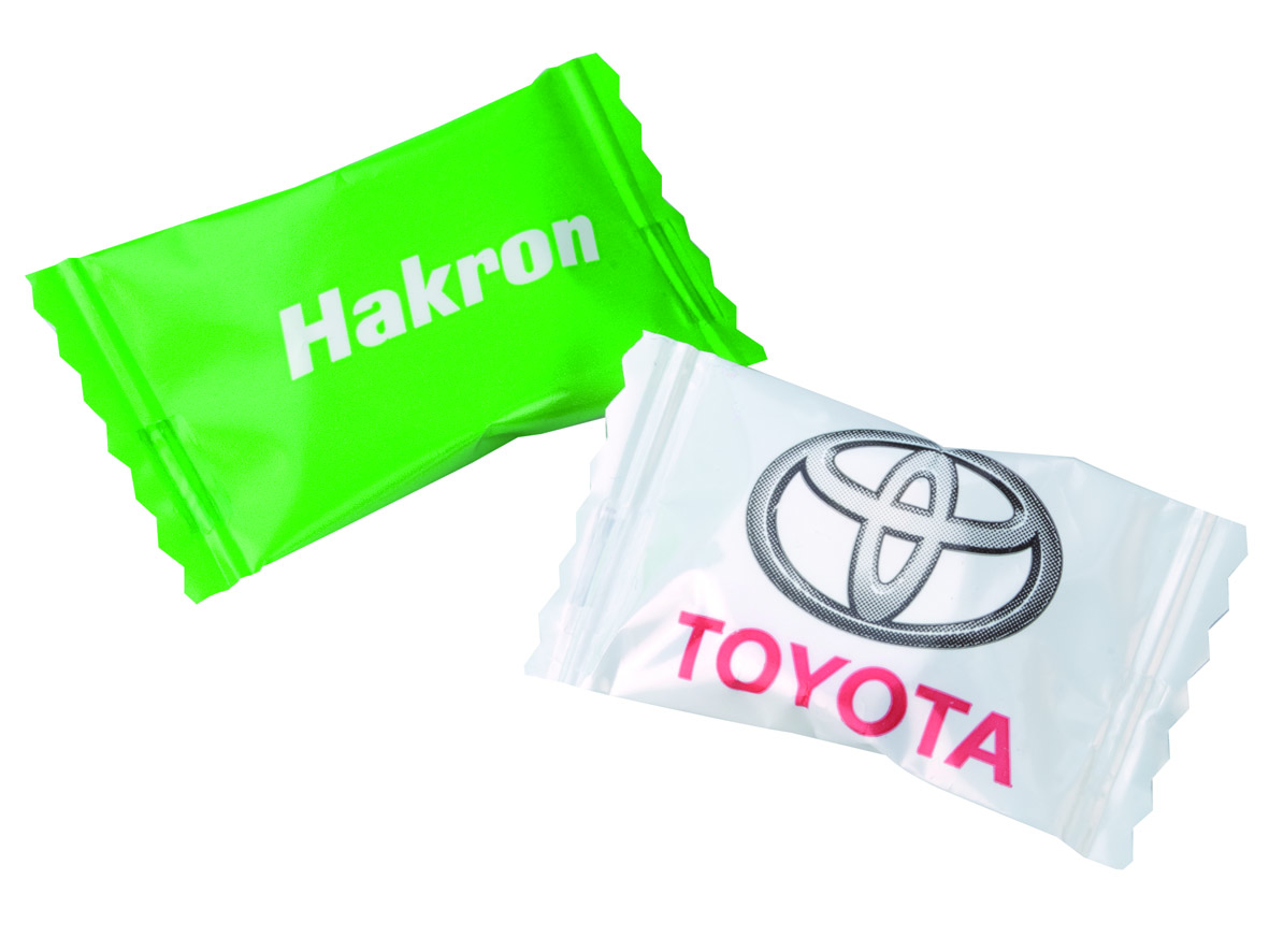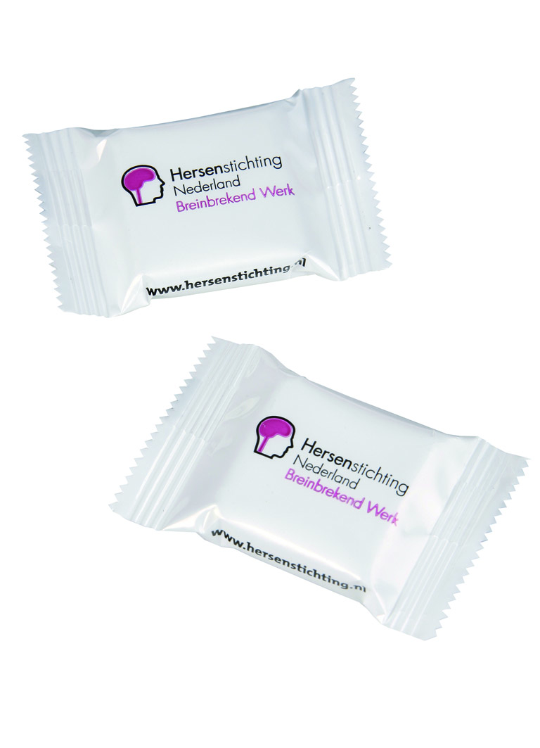 De verpakking van al onze snoepjes worden voorzien van een bedrukking naar uw wens. De enkelstuks verpakkingen kunnen gebruikt worden op de balie van een receptie, maar ook tijdens beurzen, congressen of in uw horeca zaak. Willen jullie biologisch snoep? Géén probleem, laat het ons weten.