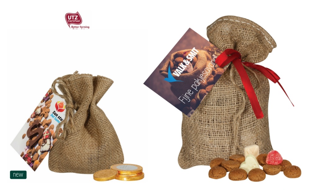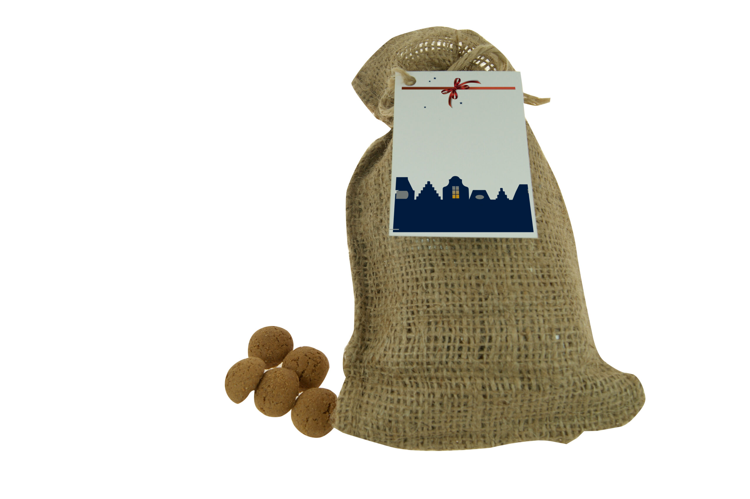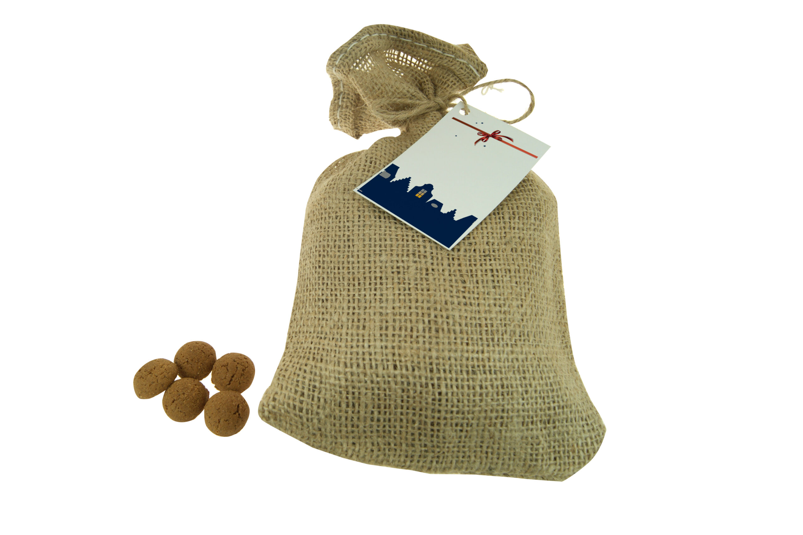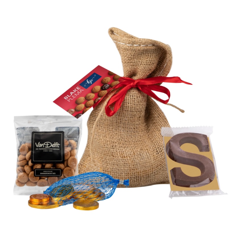 Onze sfeervolle jutezakjes zitten boordevol Sinterklaaslekkernijen, van kruidnoten en schuimpjes tot kleine chocoladeletters en netjes met chocolademunten. Een feestelijke én duurzame manier om klanten, relaties of medewerkers tijdens de Sinterklaasperiode op een smakelijke manier te verrassen.